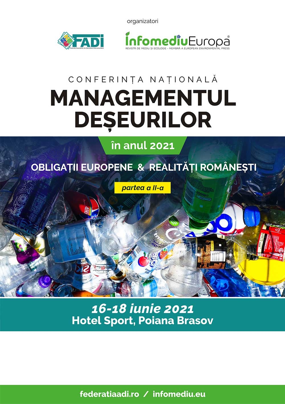 Federația Asociațiilor de Dezvoltare Intercomunitară (FADI) și revista INFOMEDIU EUROPA vă invită să participați la CONFERINȚA NAȚIONALĂ “Managementul deșeurilor în economia circulară”– ediția a-II-a, eveniment dedicat dezbaterilor între reprezentanții ADI, operatorilor de colectare, transport, sortare și administrare depozite/CMID, OIREP-uri, Ministerului Mediului, Apelor și Pădurilor, producători și importatori de tehnologii în domeniul tratării deșeurilor, precum și specialiști